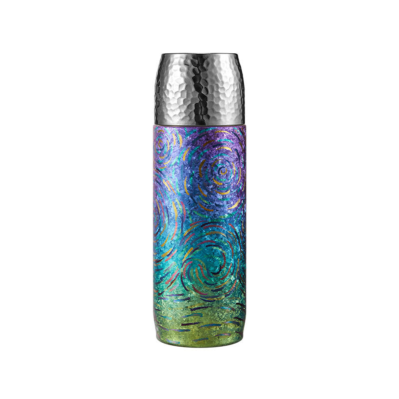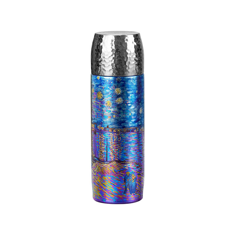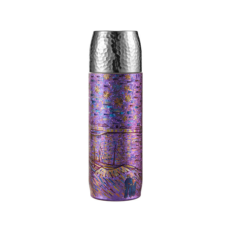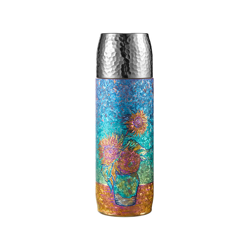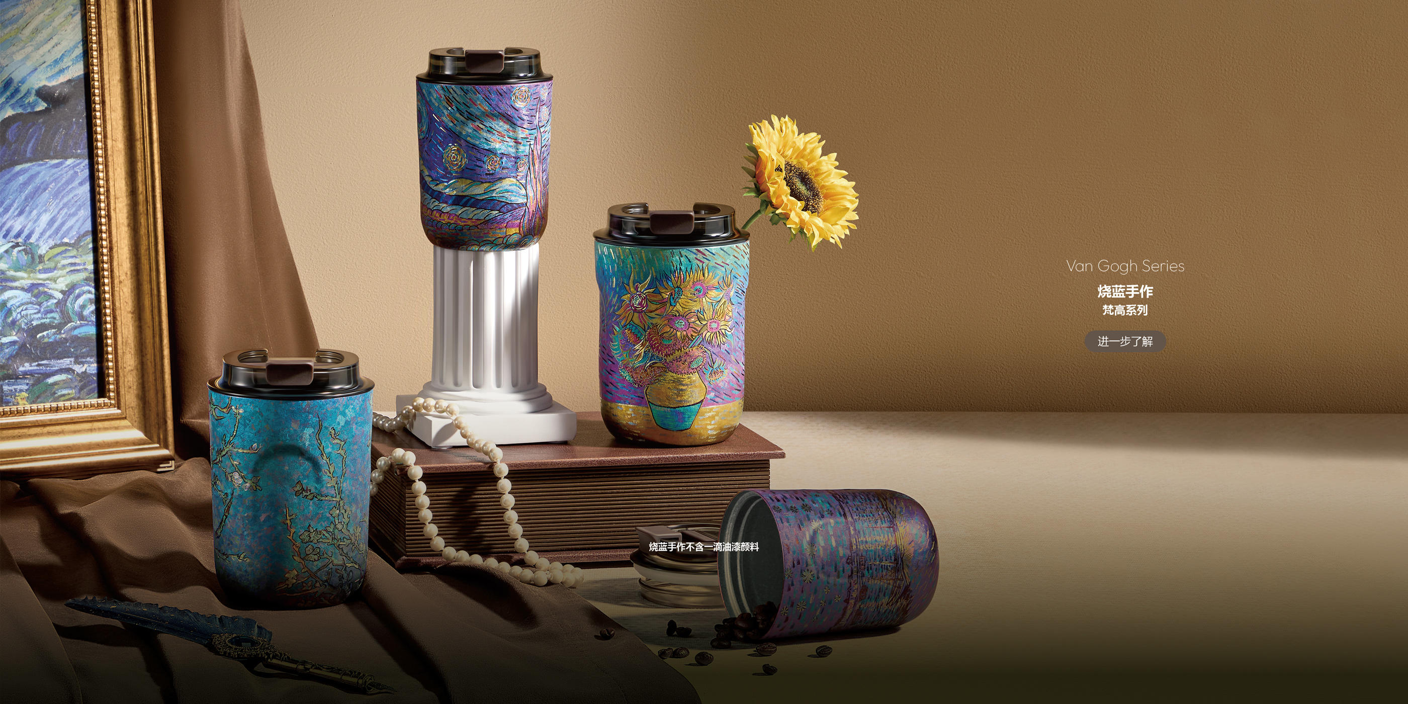 SIMELO纯钛系列携烧蓝手作大师,以二次创作致敬梵高,重新诠释梵高焕发生命力的画作,以笔触勾勒高温炫色的工艺赋予其流光溢彩的视觉效果。在享受醇香咖啡带来的惬意时,一起走进梵高的色彩世界,感受那些热烈的向日葵所带来的生命力,体会那些繁星点点夜空下的孤独与梦想。