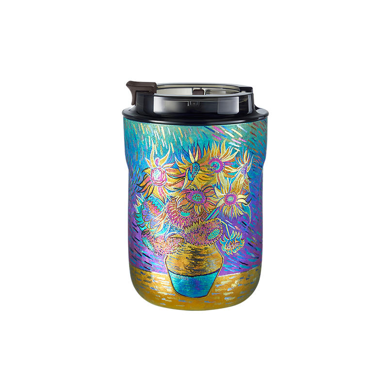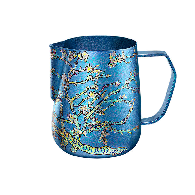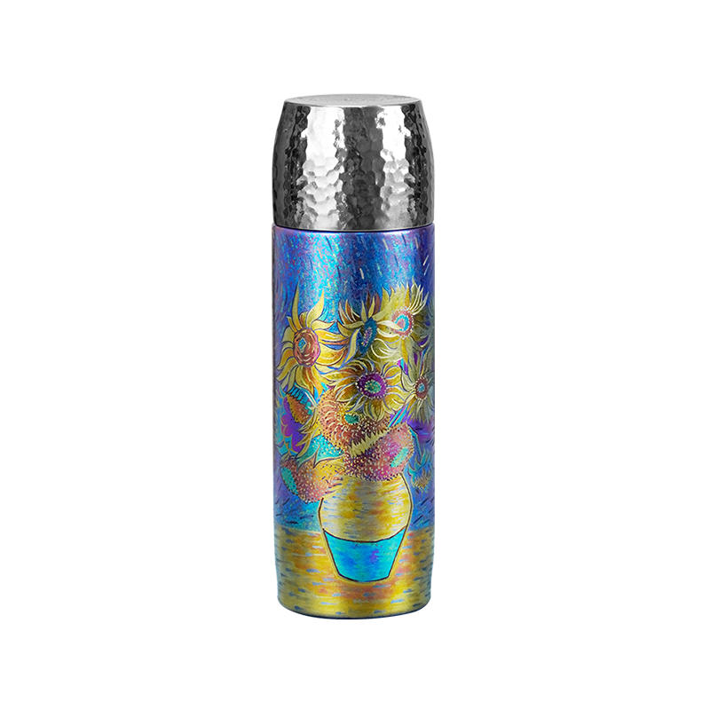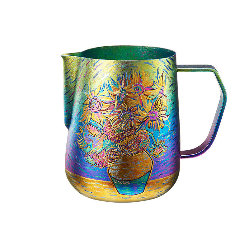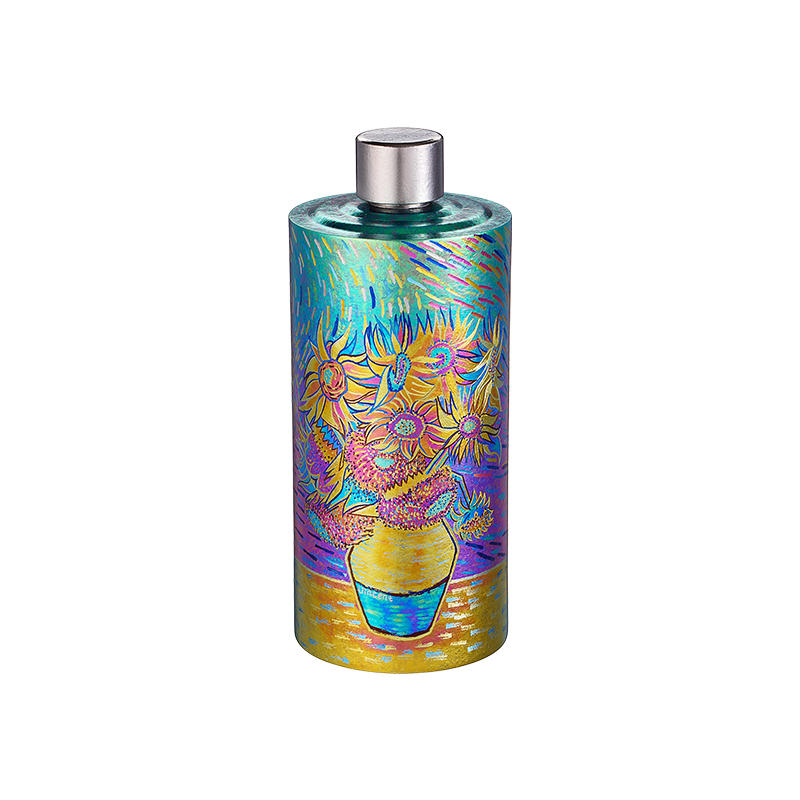 SIMELO纯钛系列携烧蓝手作大师,以二次创作致敬梵高,重新诠释梵高焕发生命力的画作,以笔触勾勒高温炫色的工艺赋予其流光溢彩的视觉效果。在享受醇香咖啡带来的惬意时,一起走进梵高的色彩世界,感受那些热烈的向日葵所带来的生命力,体会那些繁星点点夜空下的孤独与梦想。